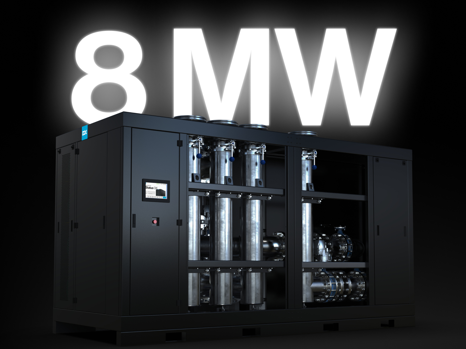 DCX reports that the FDU V2AT2 delivers up to 8.15 MW of heat-transfer capacity and a 550 m3/h flow rate to support 45 C warm-water operation. The company says this operating point can “eliminate the need for chillers on the heat-rejection side in many deployments,” and that the unit includes a heat exchanger with a 2 C approach temperature to support “heat reuse and low cost heat rejection.”